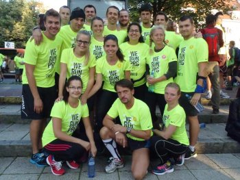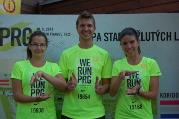 Poslední prázdninovou sobotu se v Praze běžel čtvrtý ročník mezinárodního běhu We Run Prague 2014. Deset tisíc běžců se už od čtrnácti hodin scházelo do areálu Žlutých lázní, kde pro ně byl připraven bohatý sportovní a společenský program, protože We Run Prague není jen o běhu, ale i o kultuře. Letošního ročníku se již tradičně zúčastnila také obecně prospěšná společnost APPN. Díky velkorysosti společnosti NIKE si své startovní sety obléklo 19 neslyšících běžců, včetně našich kolegů z Tichých zpráv. Před závodem byla k dispozici běžcům tlumočnice znakového jazyka Michaela Dudková.