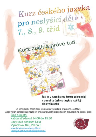 Jazykové centrum Ulita opět otevřelo kurz Český jazyk hrou pro děti se sluchovým postižením. Do kurzu se mohou hlásit děti 7.-9. tříd právě nyní.