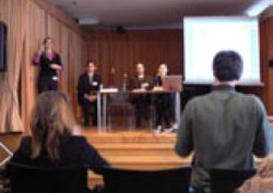 >Čtvrteční přednáška na rakouském velvyslanectví v Bratislavě seznámila veřejnost s novými projekty zaměstnanosti, e-learningu, organizacemi věnující se sluchově postiženým, projektem slovníku znakového jazyka apod.